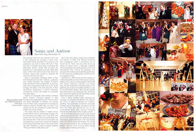 We’re so excited to be featured in Bibi Bridal Annual 2011 with one of our favorite weddings of the year: Sonia and Andrew’s fabulous New Year’s Eve Wedding at Studio 450 in New York! Thanks to Devi Catering for submitting this truly unique wedding and helping us show off how awesome Sonia and Andrew are!